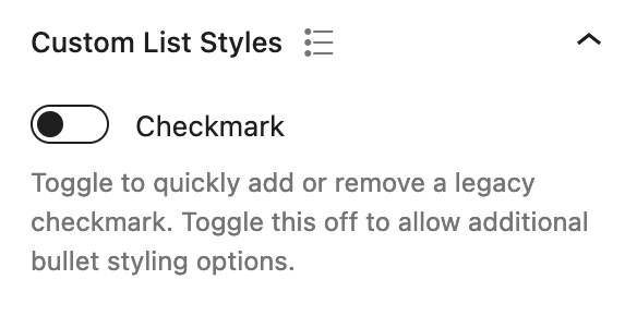 If you need a quick bullet style, just use the checkmark toggle or simply leave the controls as-is.
