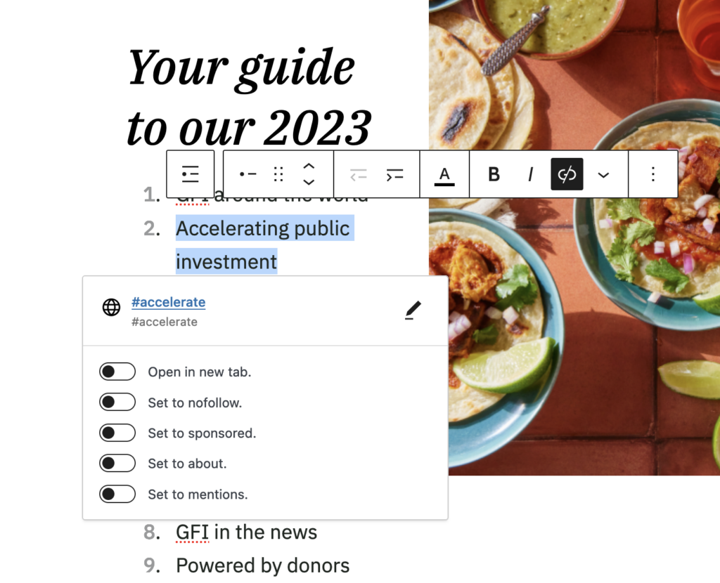 A “Table of Contents” block has been added to the GFI theme. The block highlights what is to come on the page and allows administrators to hyperlink down to anchors further down the document.